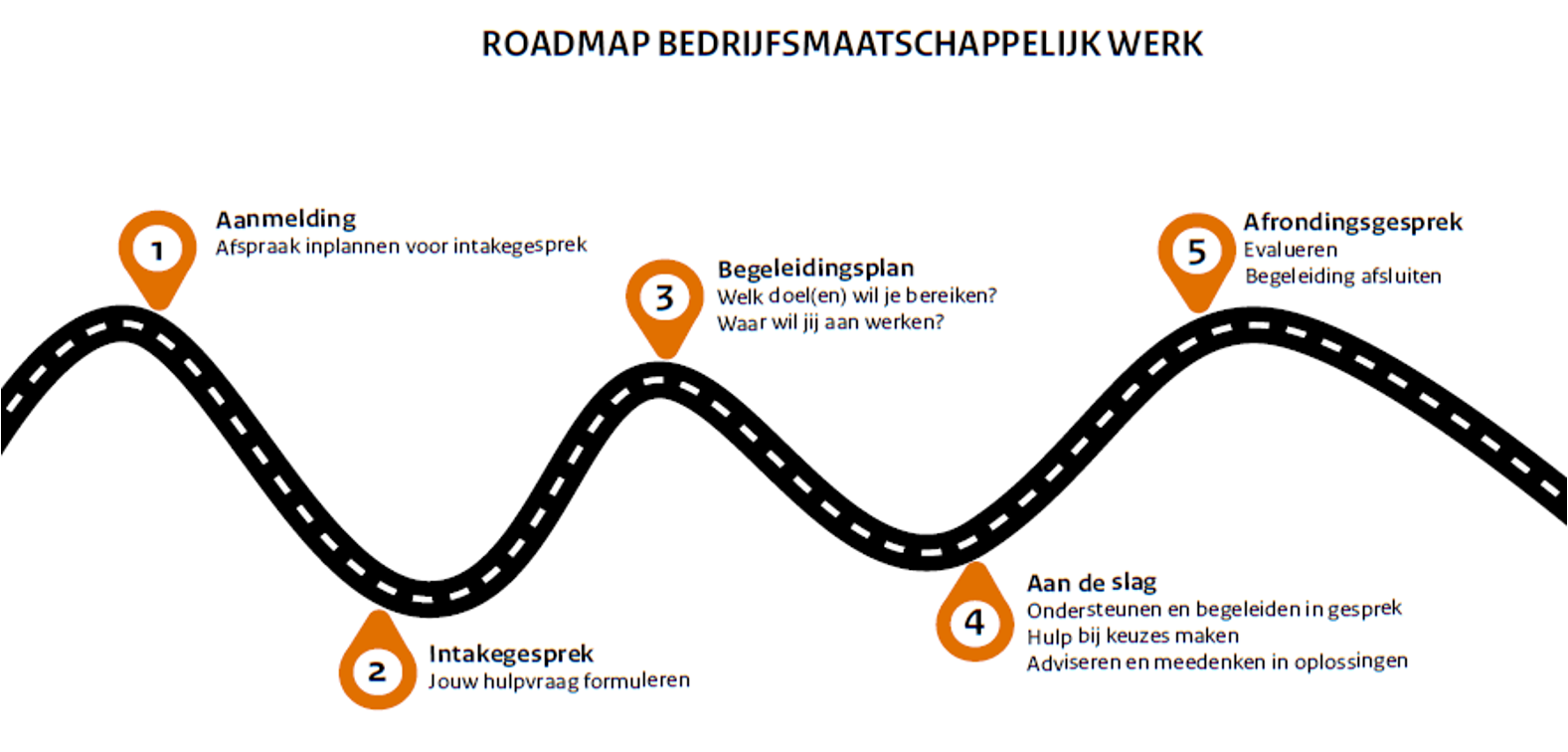 Als bedrijfsmaatschappelijk werkers brengen we rust, overzicht en perspectief. We ondersteunen medewerkers bij zowel werkgerelateerde als privéproblemen, en adviseren leidinggevenden bij het versterken van veerkracht binnen hun teams. Altijd met oog voor de mens én de organisatie.